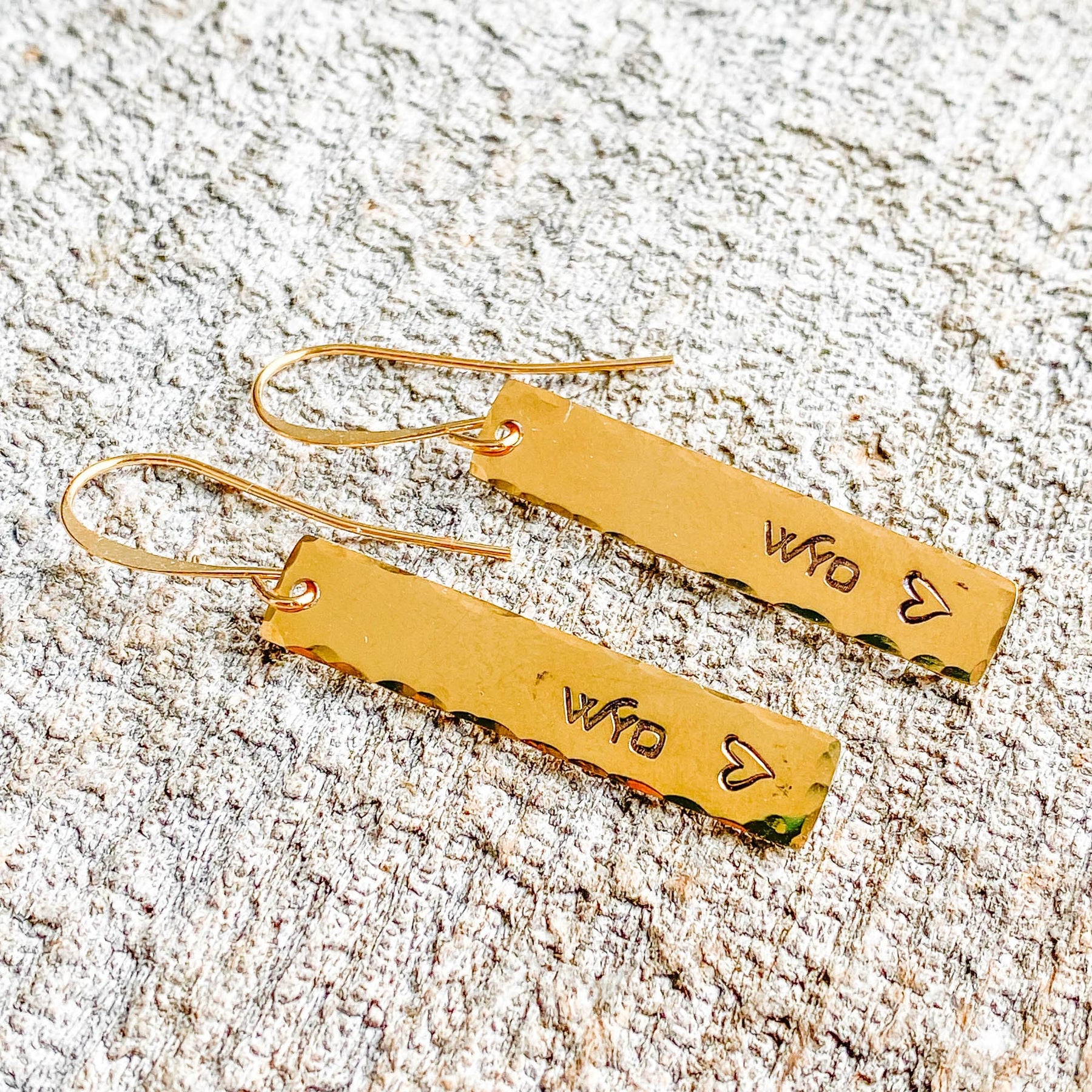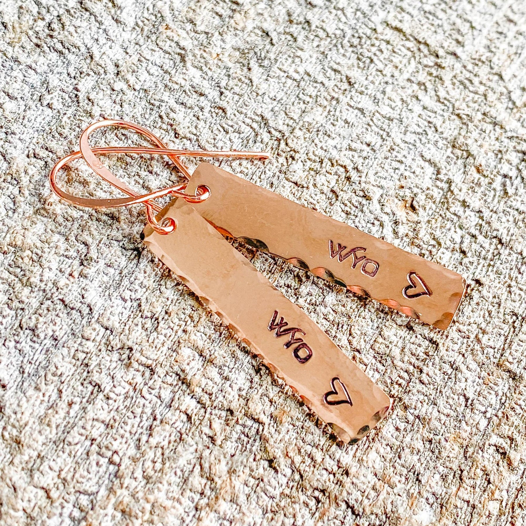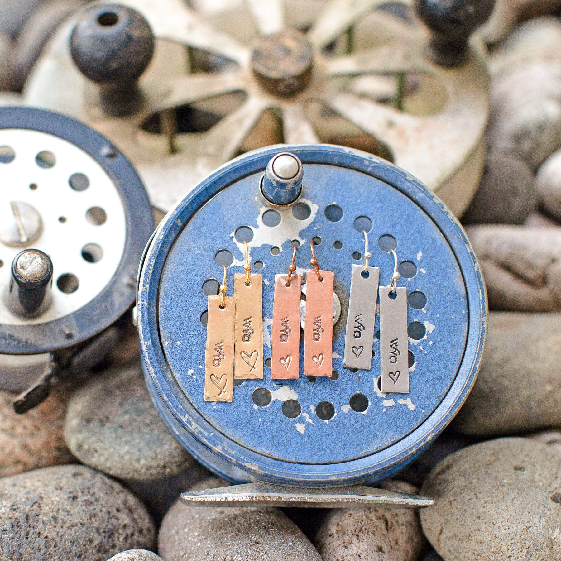 Represent your love of fly fishing with these one-of-a-kind earrings! Available in 3 different colors. The beveled edges offer a rustic quality to the delicate overall features lending themselves to a day on the river and a night on the town! Because these are hand stamped each pair is slightly different.