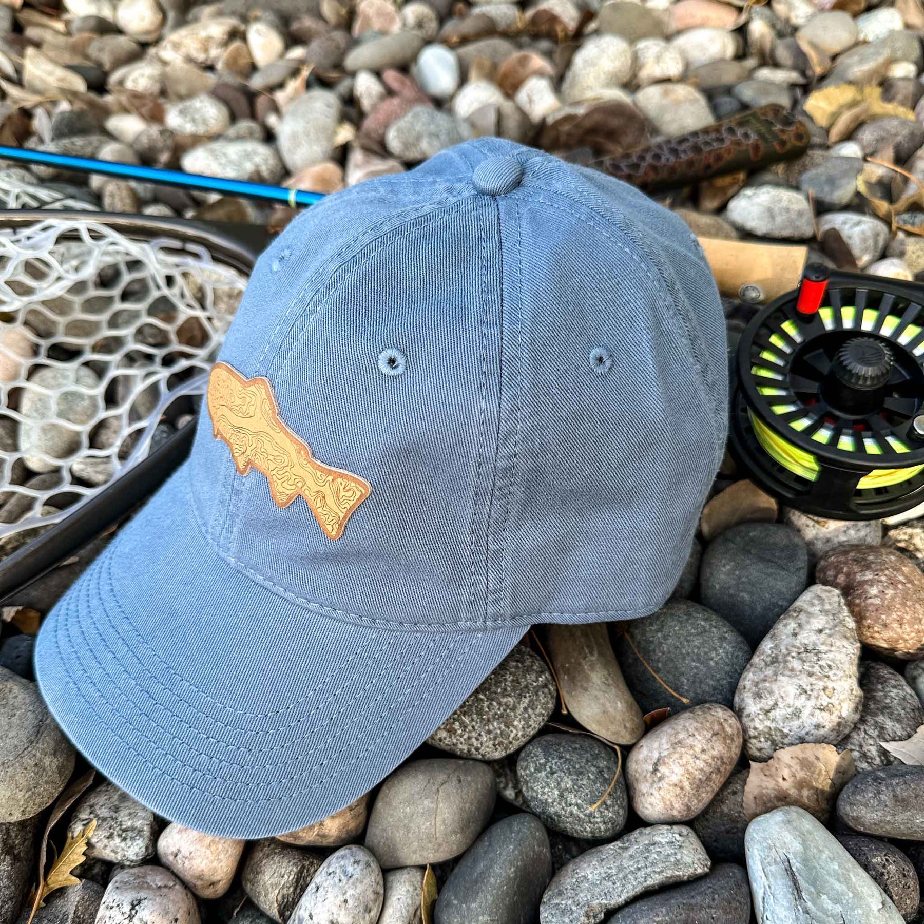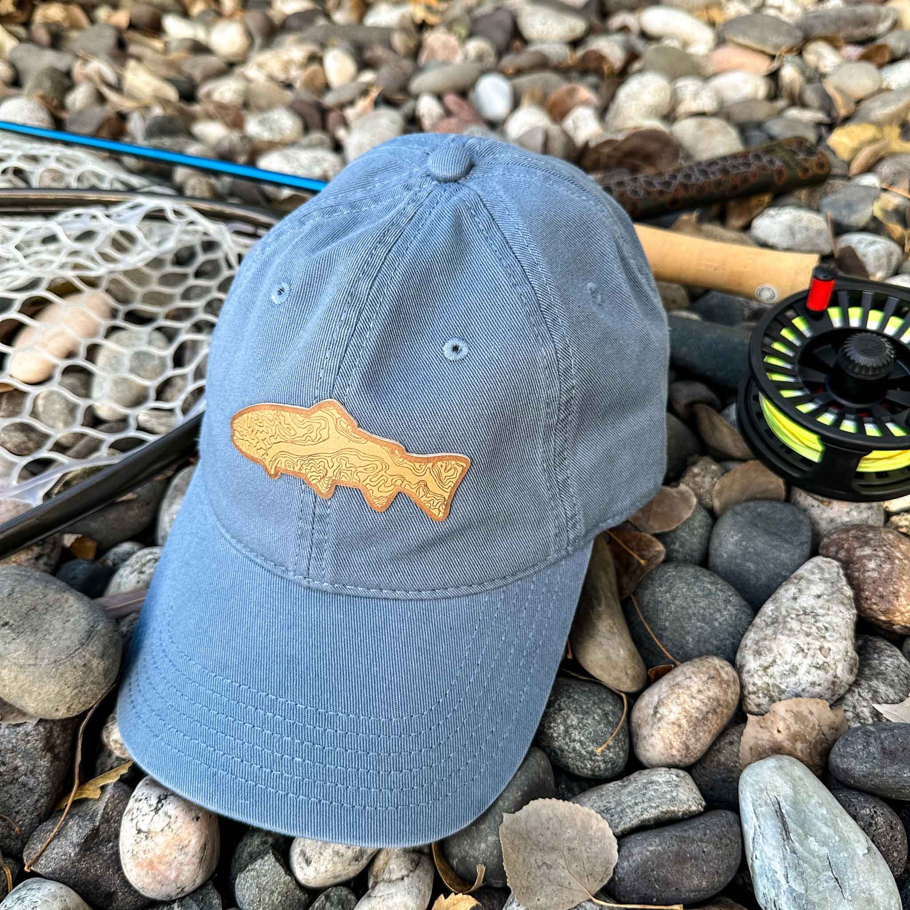 Snag one of these popular washed twill caps with a sweet topo fish leather patch!