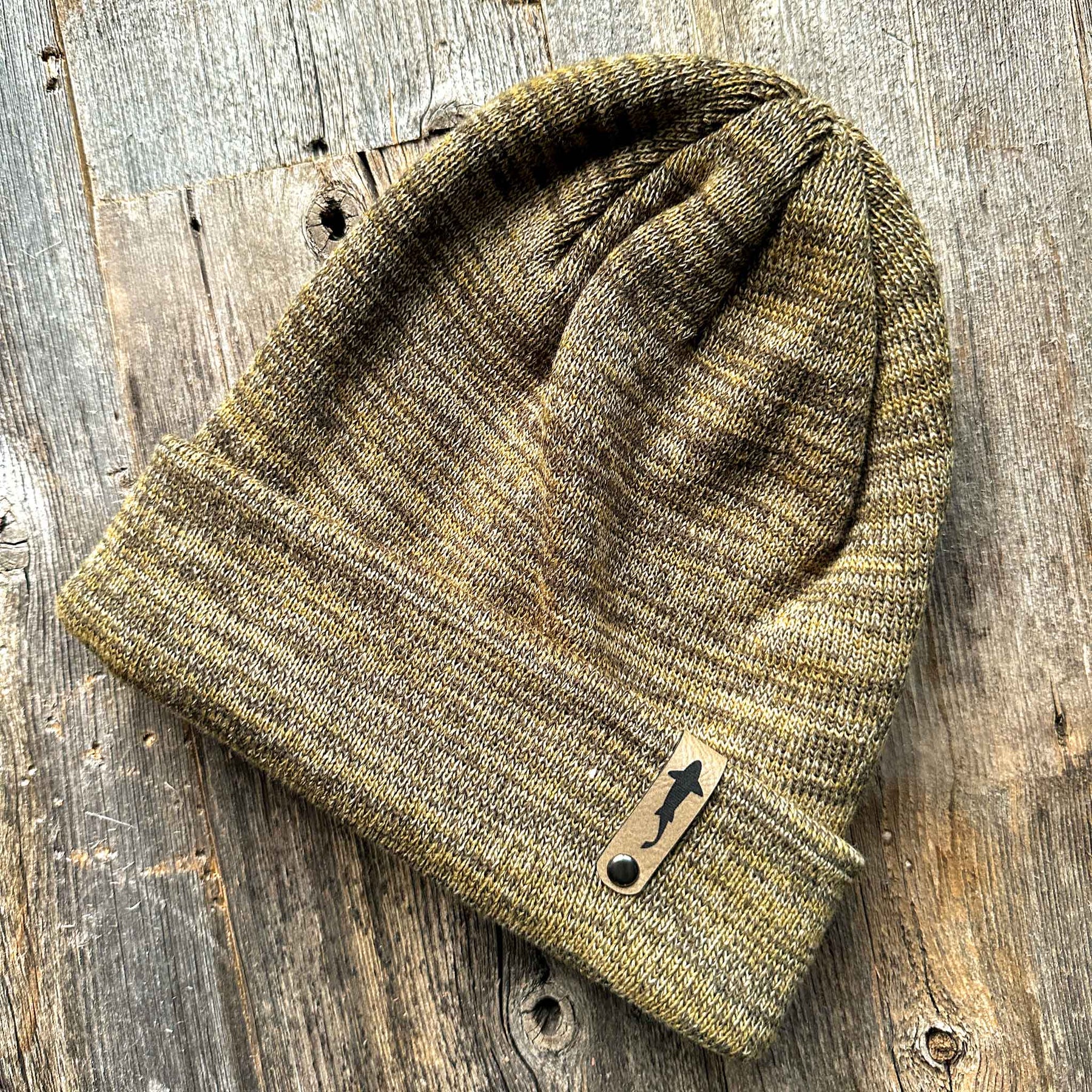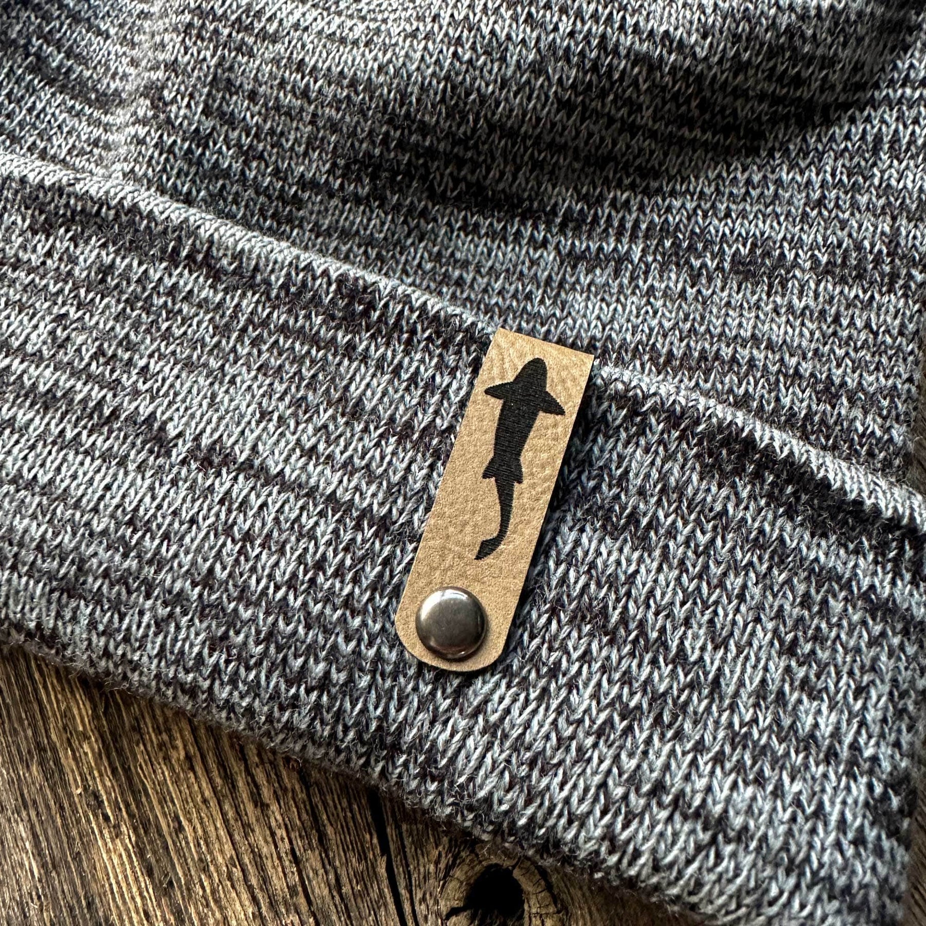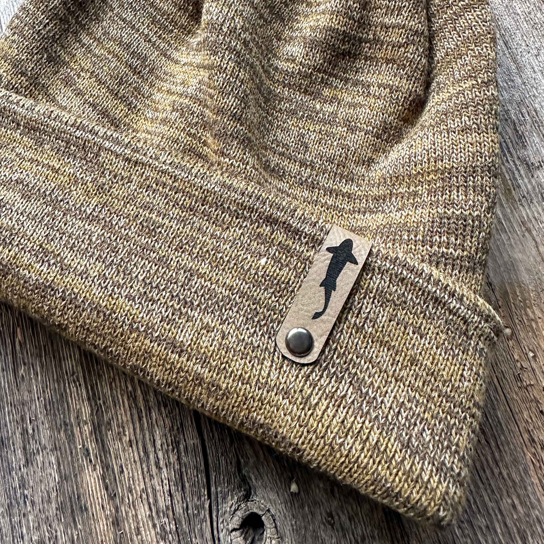 This super soft and warm beanie will keep your noggin' extra warm during your cold weather fishing other cold weather activities. The leather tag features a minimalistic trout swimming tag.