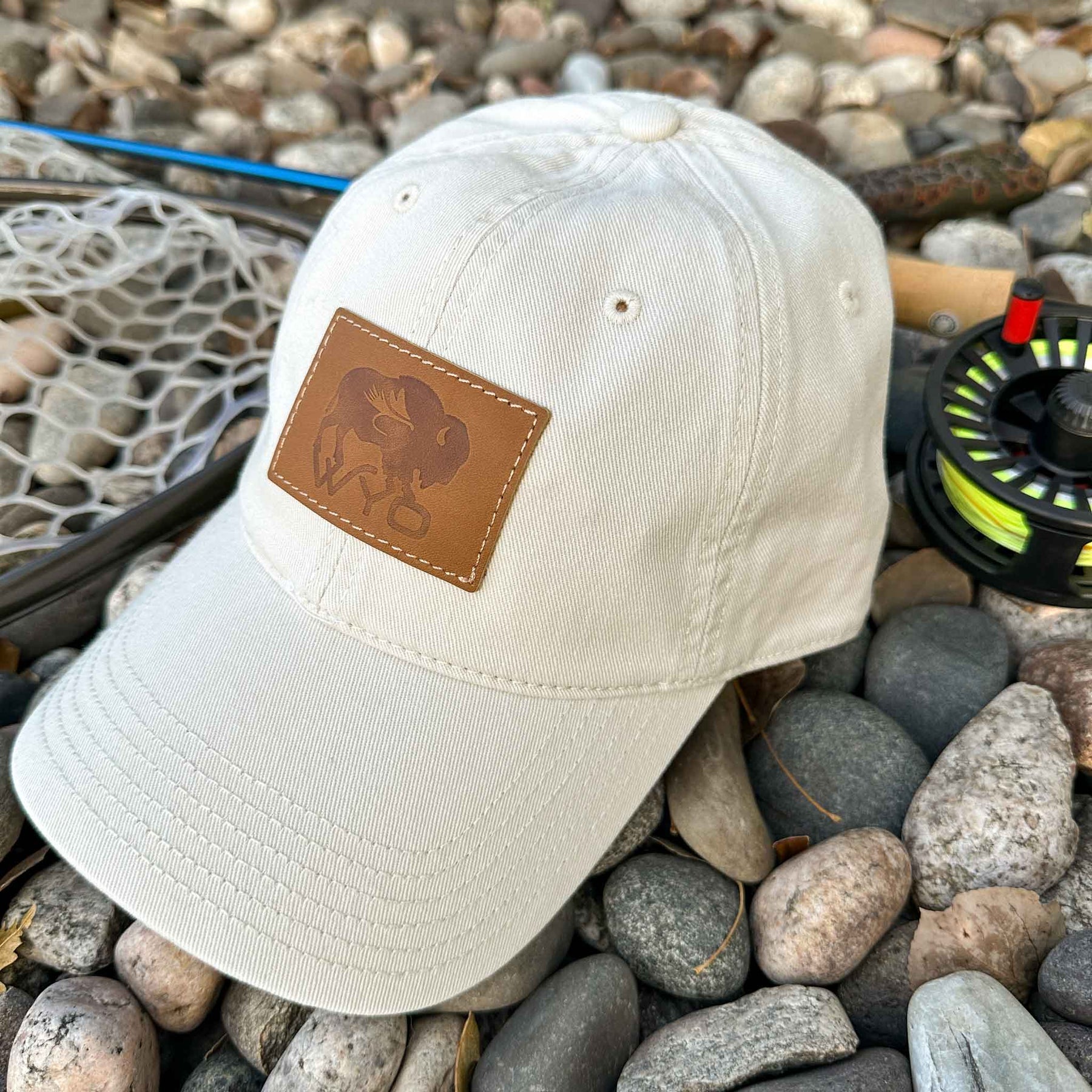 Snag one of these popular washed twill caps with a sweet topo fish leather patch!