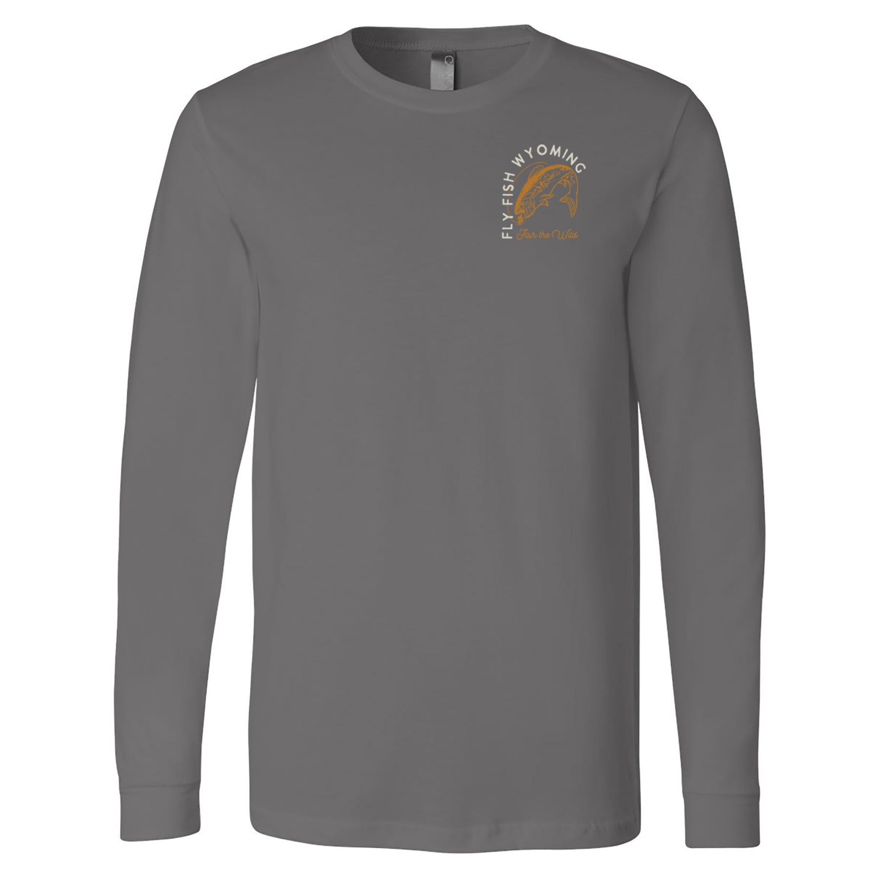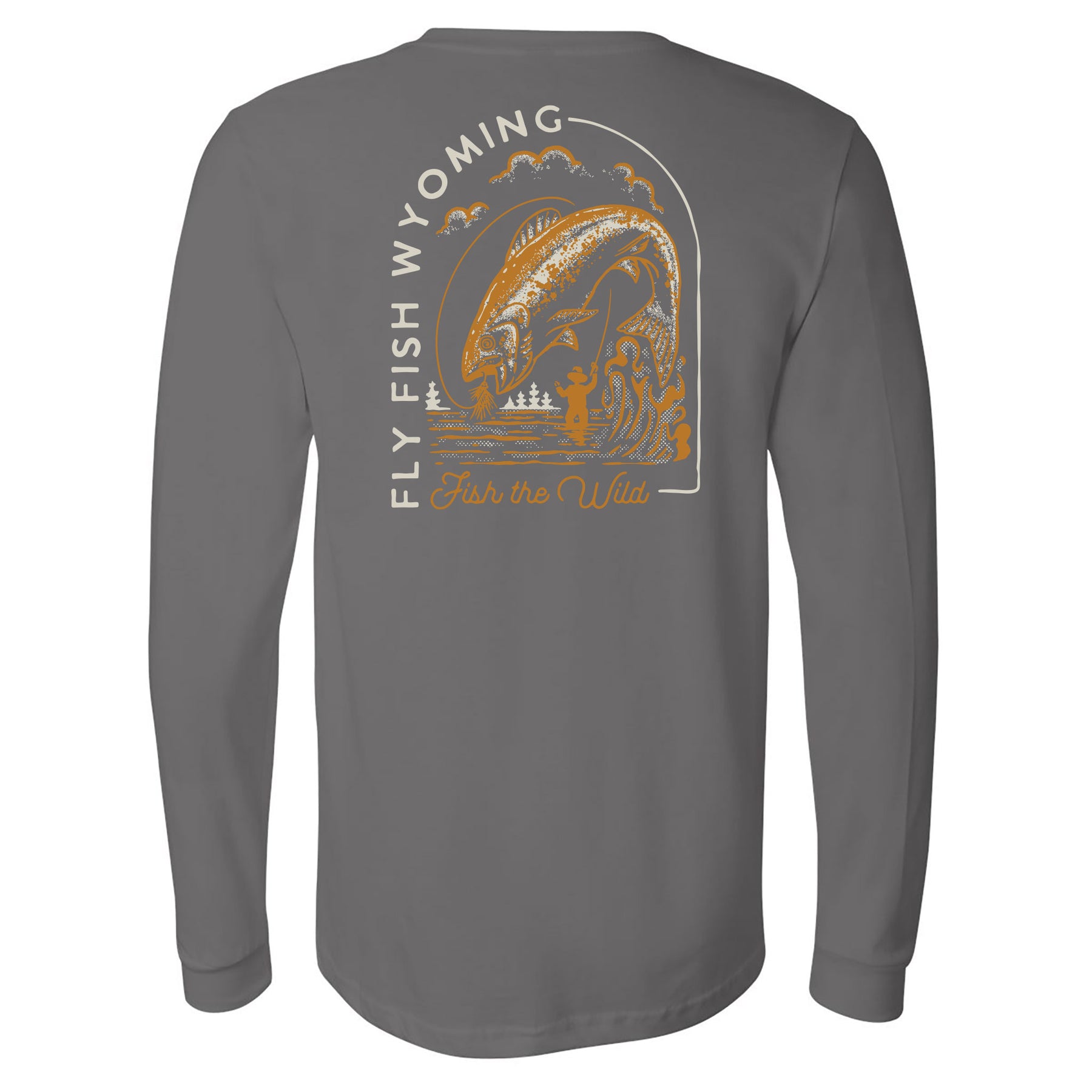 Imagine it—standing knee-deep in the cool Wyoming waters, casting with precision, when suddenly a massive trout explodes from the river, fly in its mouth. Victory! That thrill is captured in this cozy unisex long sleeve.