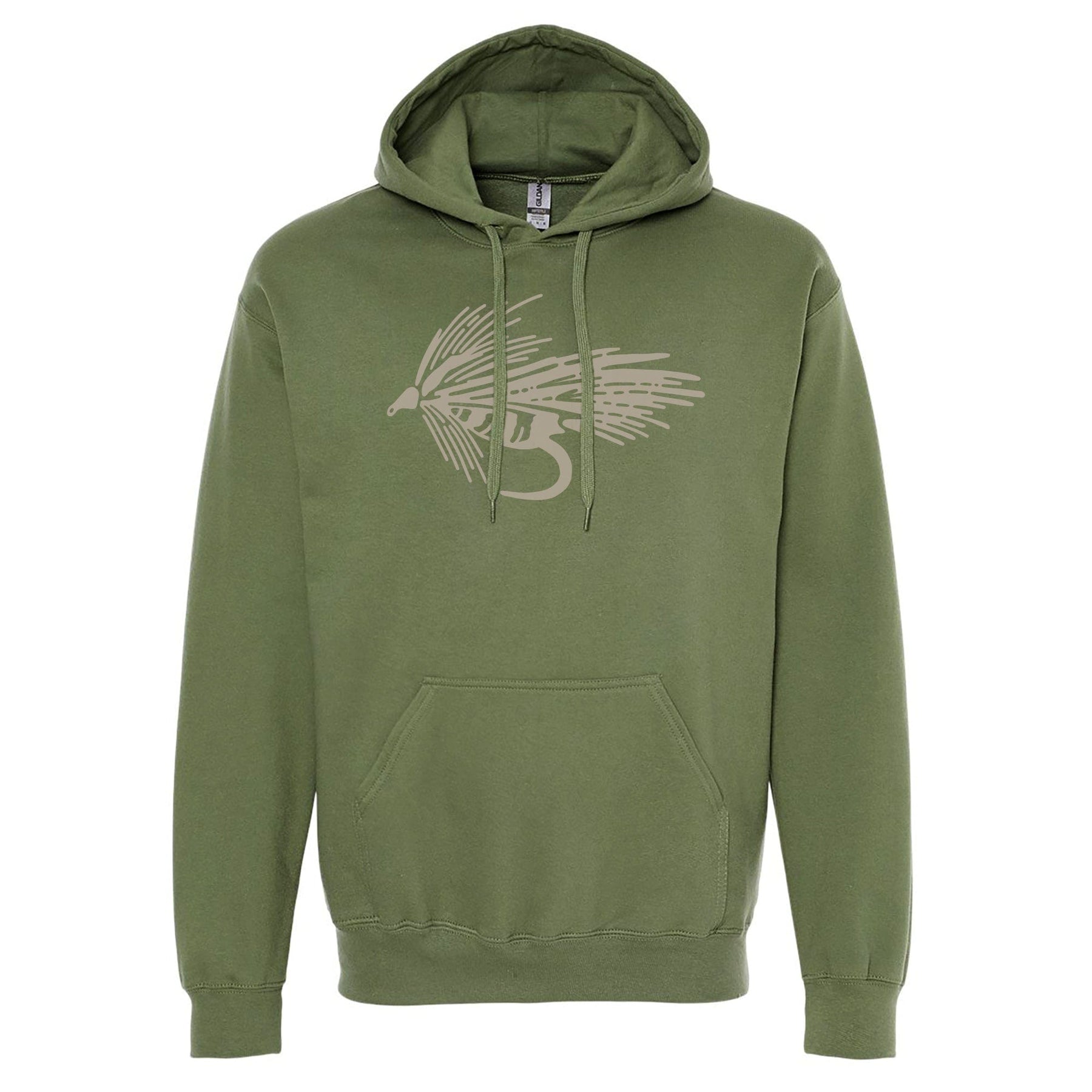 Stay warm and on point for every cast with our mid-weight pullover Streamer Fly Hoodie. Designed for cool days on the water or around town, this classic-fit sweatshirt features our popular Streamer design—an understated fly graphic that celebrates the art of fly fishing. Soft fleece inside, a cozy hood, and a roomy front pocket make it perfect for layering or wearing solo from dawn patrol to the last light on the river.