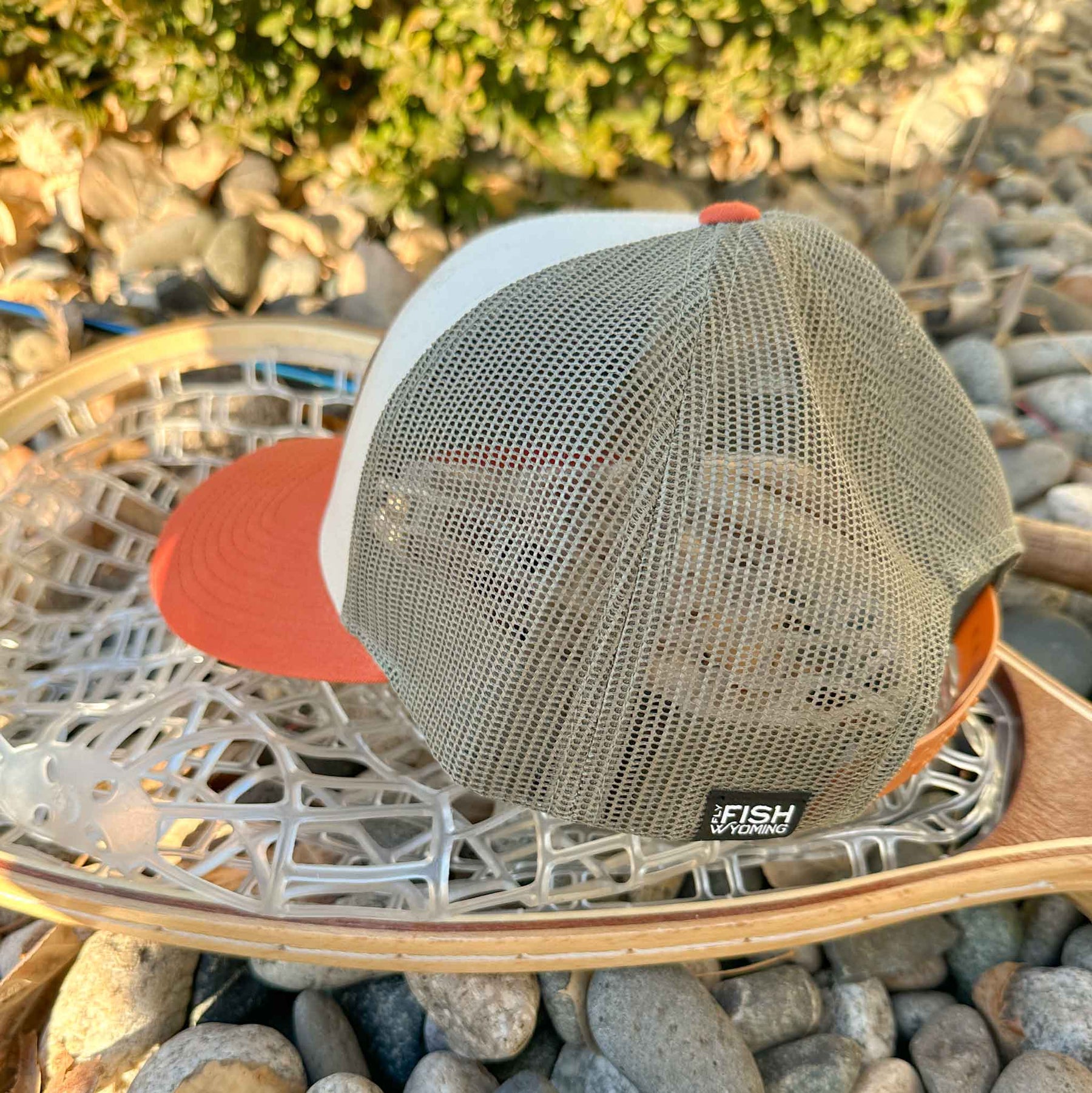 Inspired by long sunsets, river gravel, and the warm tones of Wyoming’s high desert, the High Desert Trout Patch Trucker brings a clean, timeless look to your everyday gear. This cream-and-rust color combo is subtle but still catches the eye, paired with a neutral mesh back that keeps things breathable from the riverbank to town.