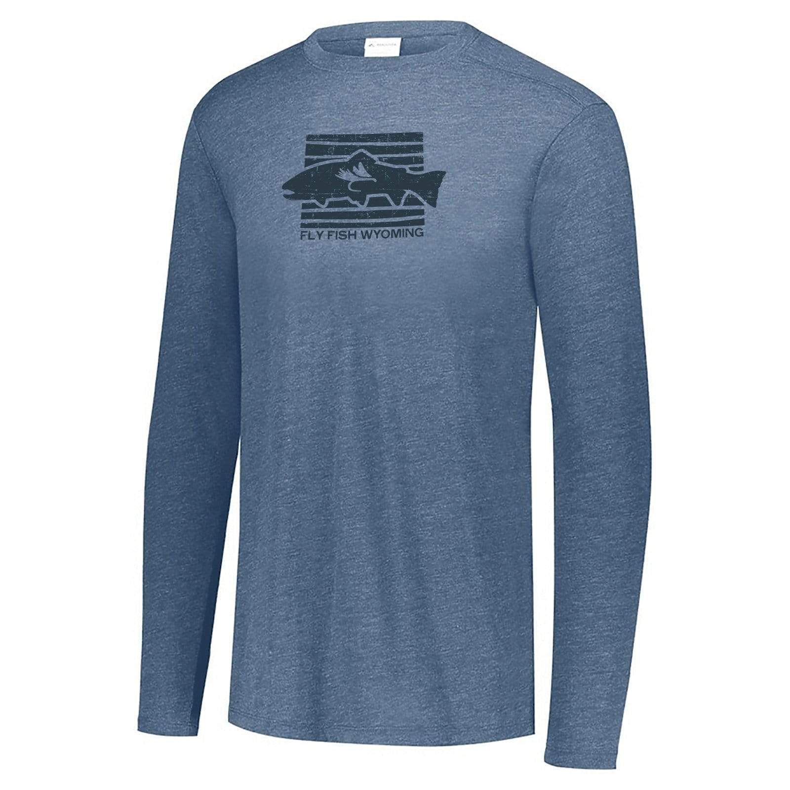 Cool mornings and chilly nights call for a comfy light weight long sleeved tee. Decorated with our Fly Fish Wyoming State Lines logo, your kiddos will be fishing in style!