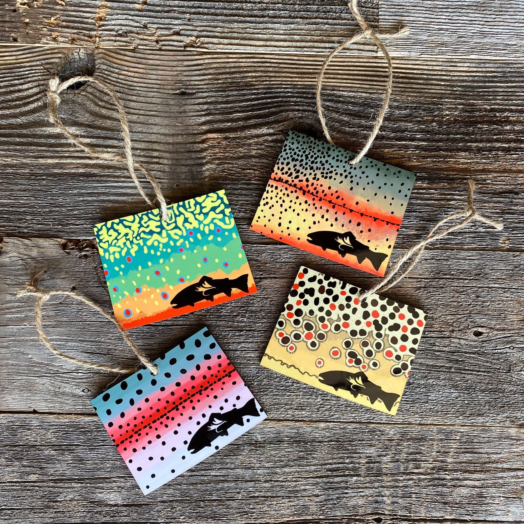 Everyone on your Christmas list needs one of these! Available in all our trout patterns with either a trout or the Wyoming bucking horse. Grab one or all 4 for a set!