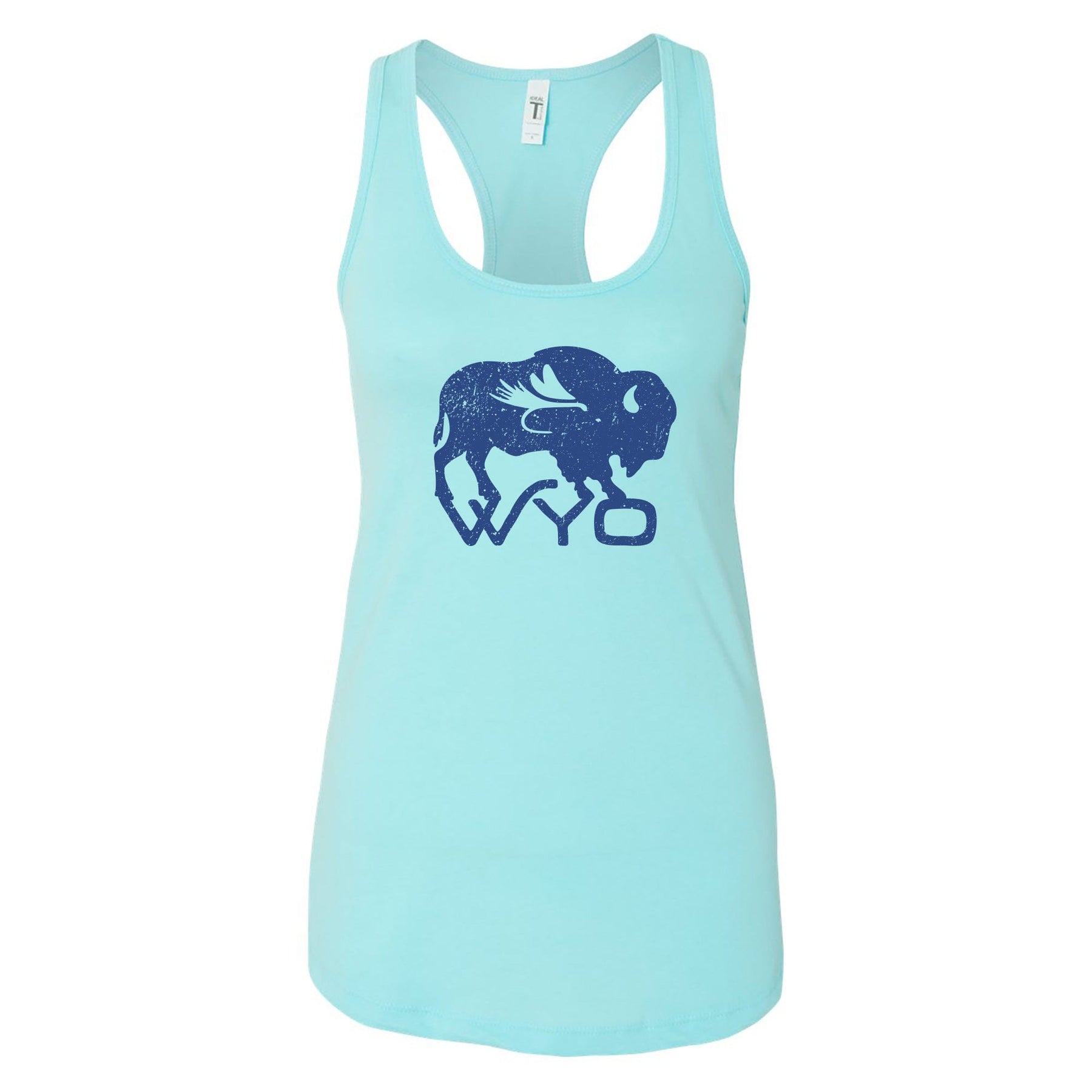 These colors remind us of summertime! This racerback tank is a lightweight cotton/poly jersey with a classic fit featuring our signature Wyo Bison Fly on the front that is ready for a day on the water.