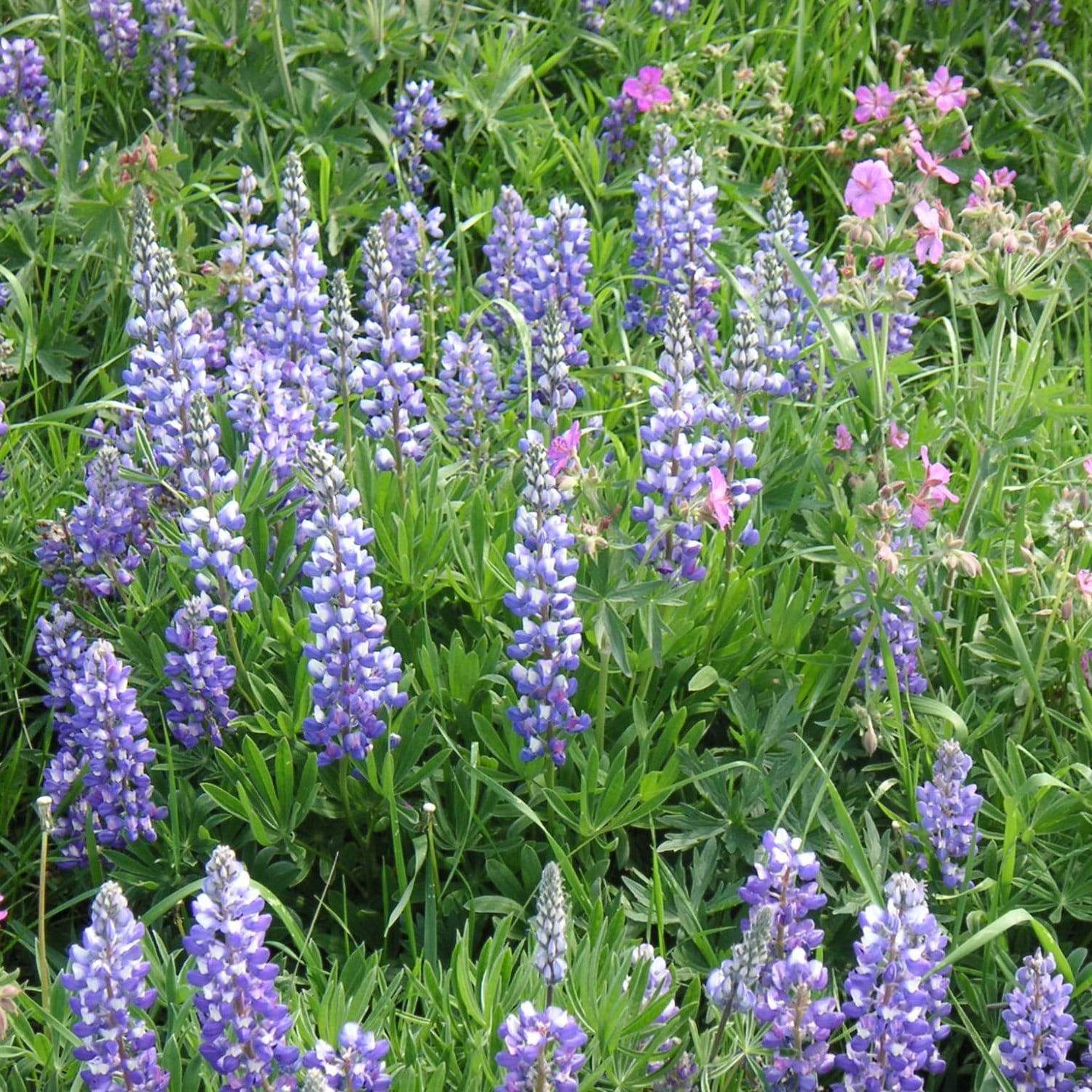 A large group of wild flowers represented over much of North America, Lupinus is showy and bold. Pronounced "Loo-pin", it carpets the meadow and prairies of the area with a mist of purple.