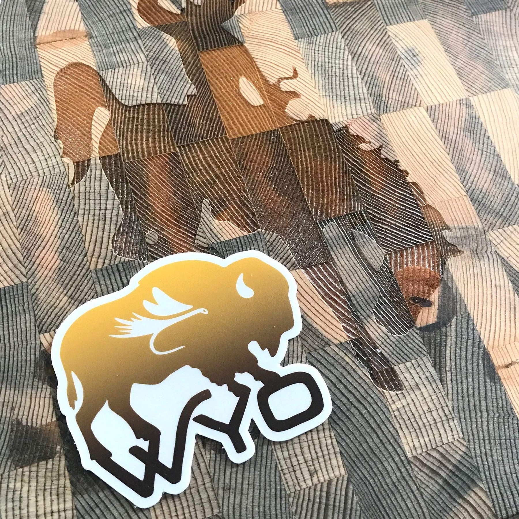 The Wyo Fly Bison design in classic Wyoming Cowboy's brown and gold!